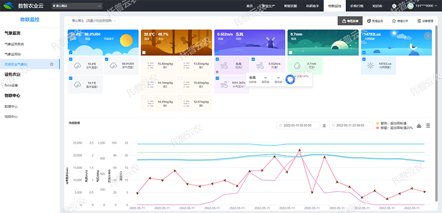 4、超限預(yù)警設(shè)置:用戶(hù)可預(yù)置常用作物報(bào)警配置,設(shè)置最低最高超限值,平臺(tái)可自動(dòng)進(jìn)行數(shù)據(jù)預(yù)警分析。